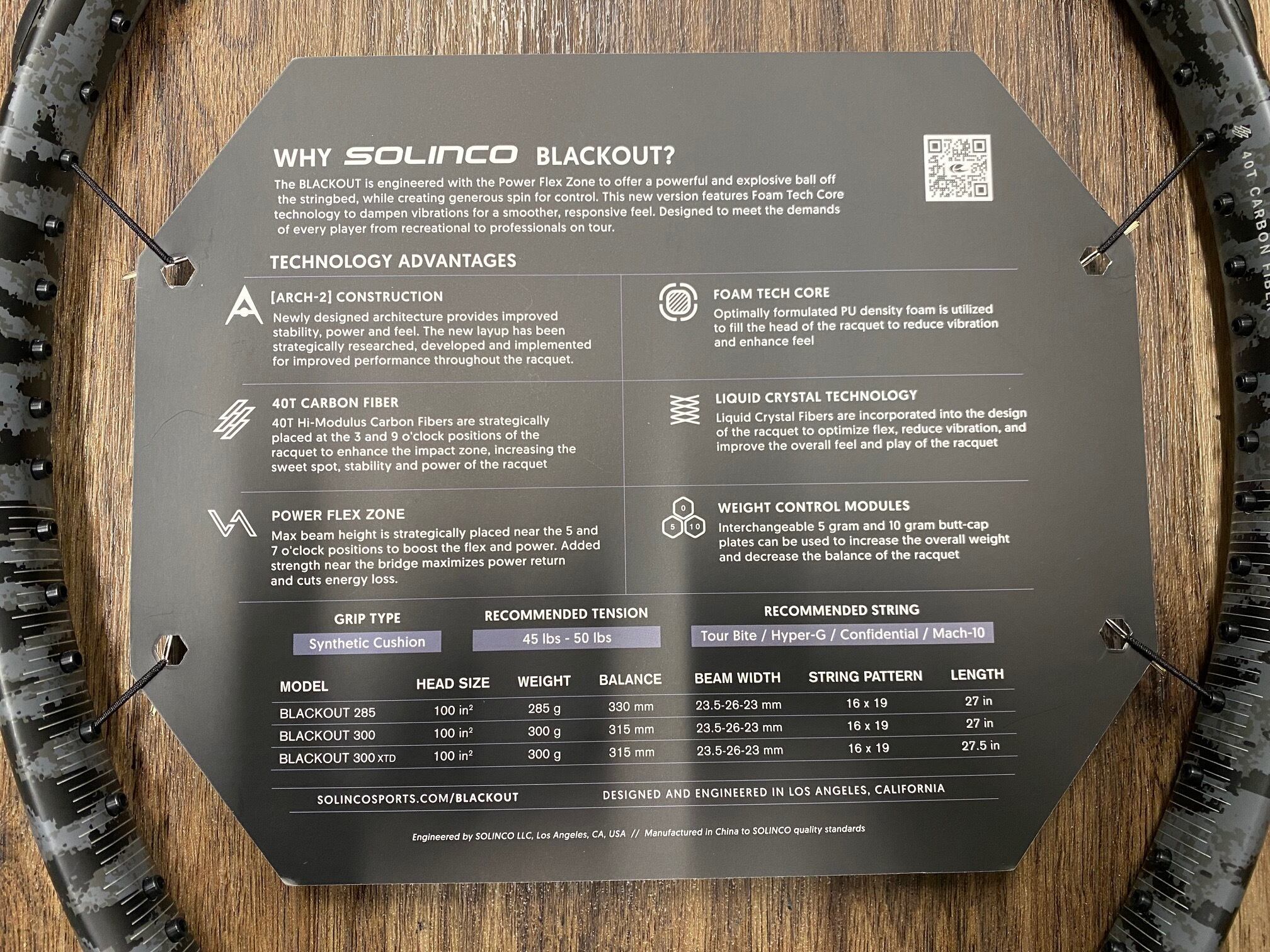 仕様:SOLINCO ブラックアウト300 V2は、100平方インチの広いフェイスと高い操作性を誇るラケットです。ストリングパターンは16×19で、スピン性能も抜群。中級者から上級者まで幅広いプレイヤーに最適な選択です。